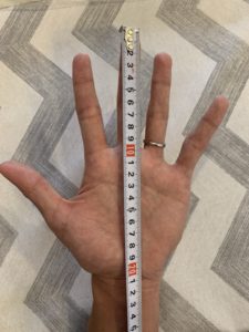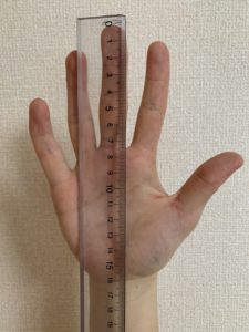 サイズ感(指先に余裕あり。9号が適正サイズ)